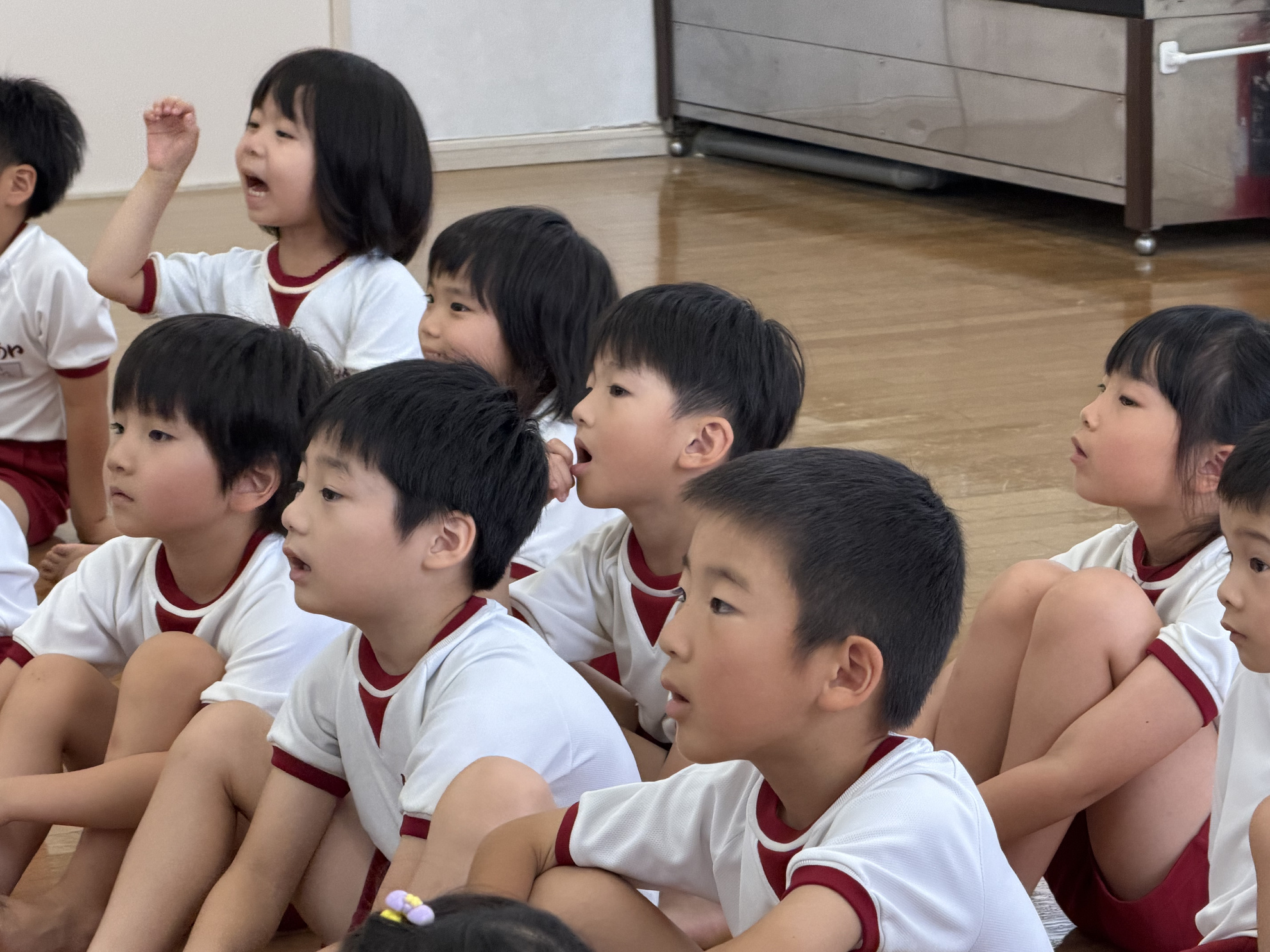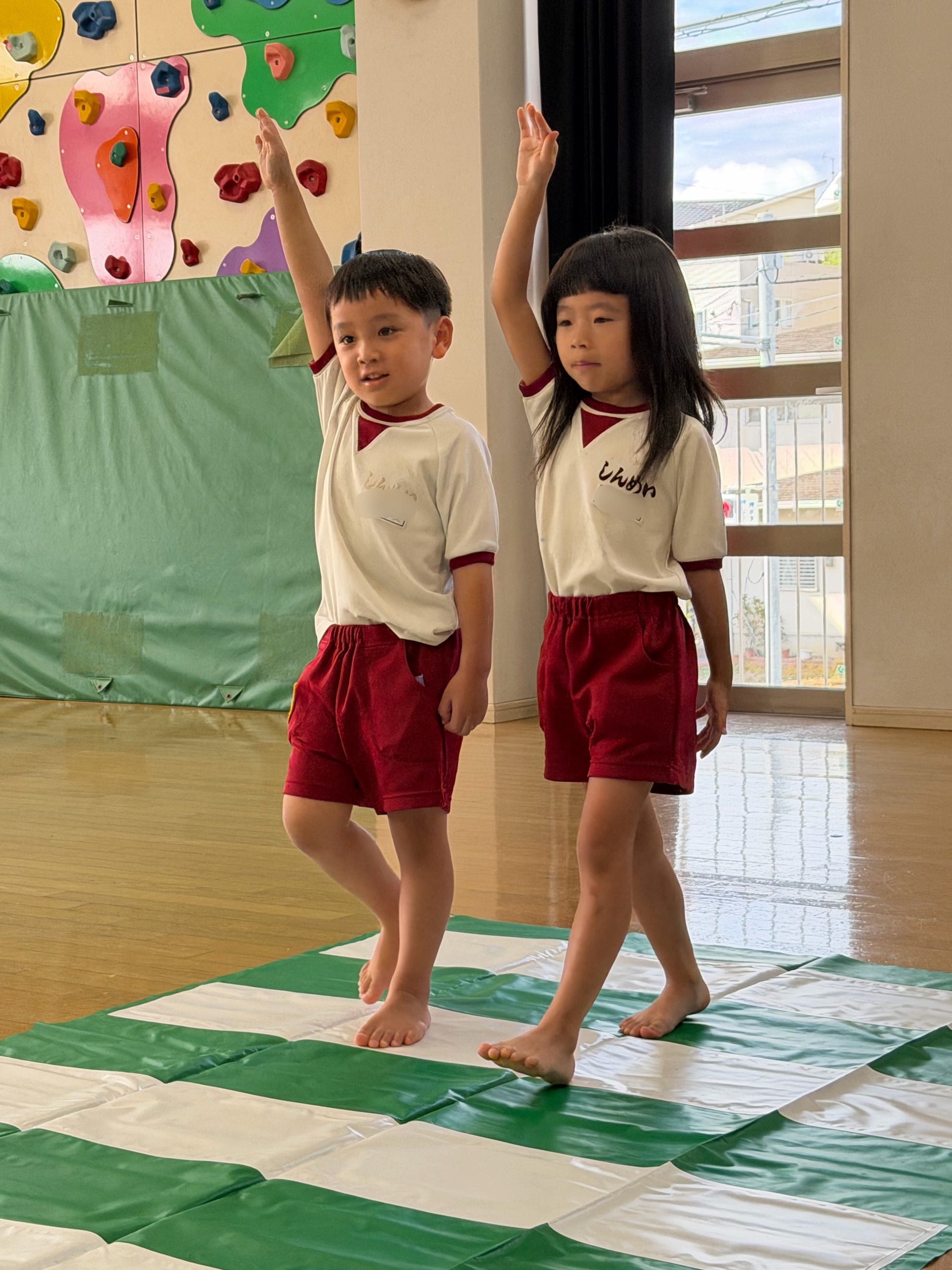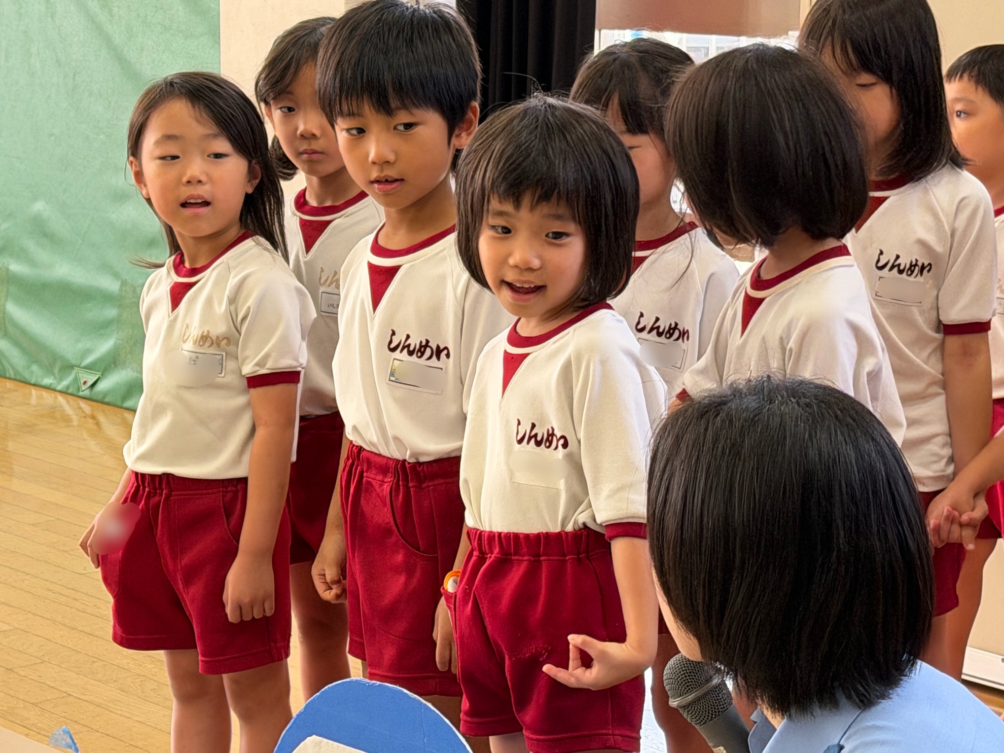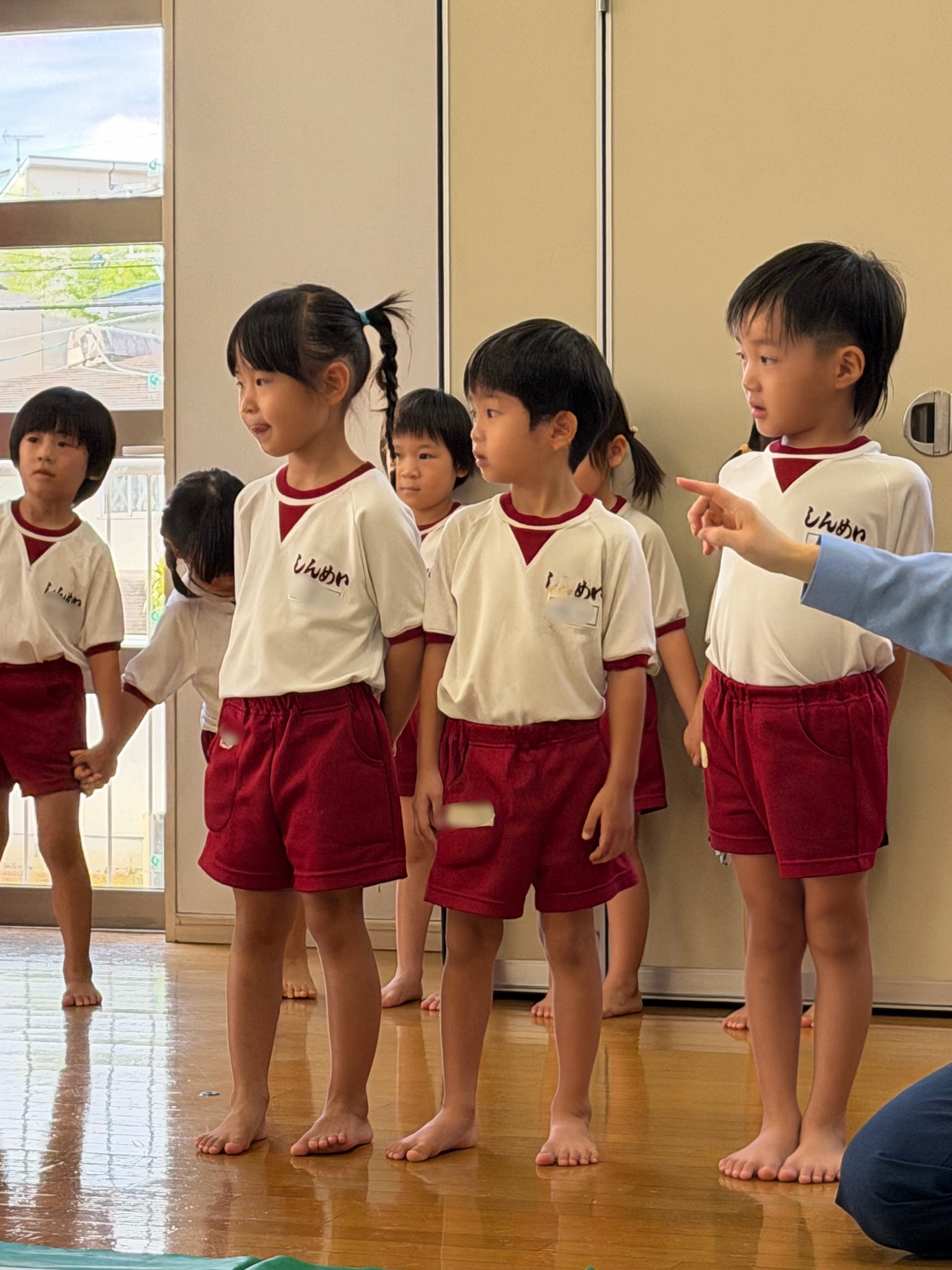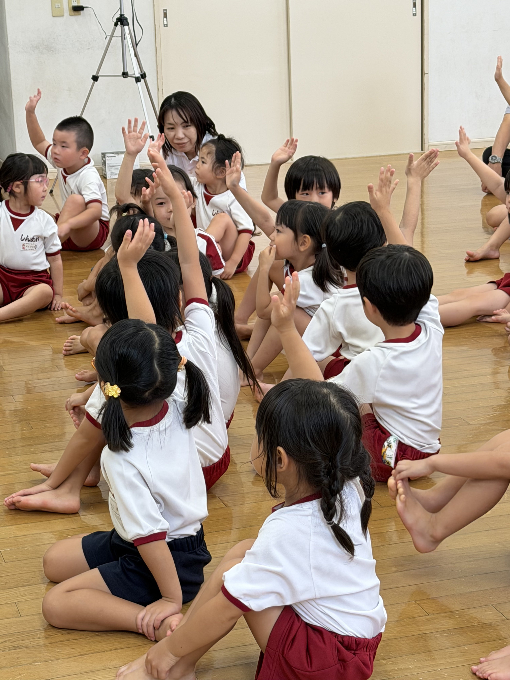 秋の交通安全教室 城南警察署から警察官の方、 城南区役所から職員の方に来ていただき、 秋の交通安全教室を行いました。 クイズ形式のお話に元気に答える子どもたち。 青は「進め」ではなくて、「危険じゃなければ進む」だね。 交通安全のDVDを観た後は、横断歩道を渡ってみました。 真剣に警察官のお姉さんの話に耳を傾けます。 車に気を付けないといけないからね! 右、左、右、と確認したら、右手を挙げて 横断歩道を渡ります。 ちょっと照れくさそうに、顔をあげて前を見て しっかりと渡ることができました。 カテゴリー: 投稿日:2025年10月15日 次へ