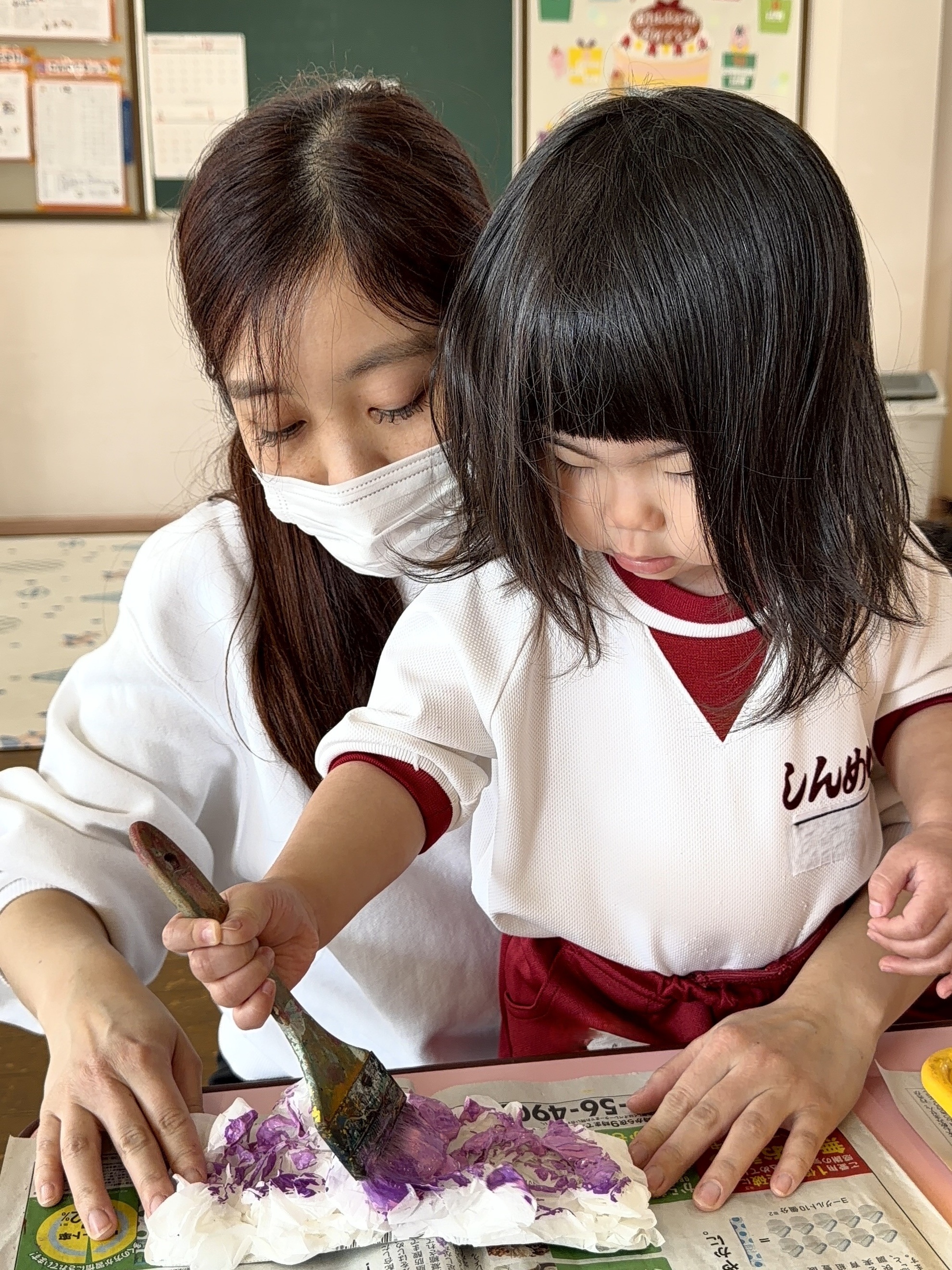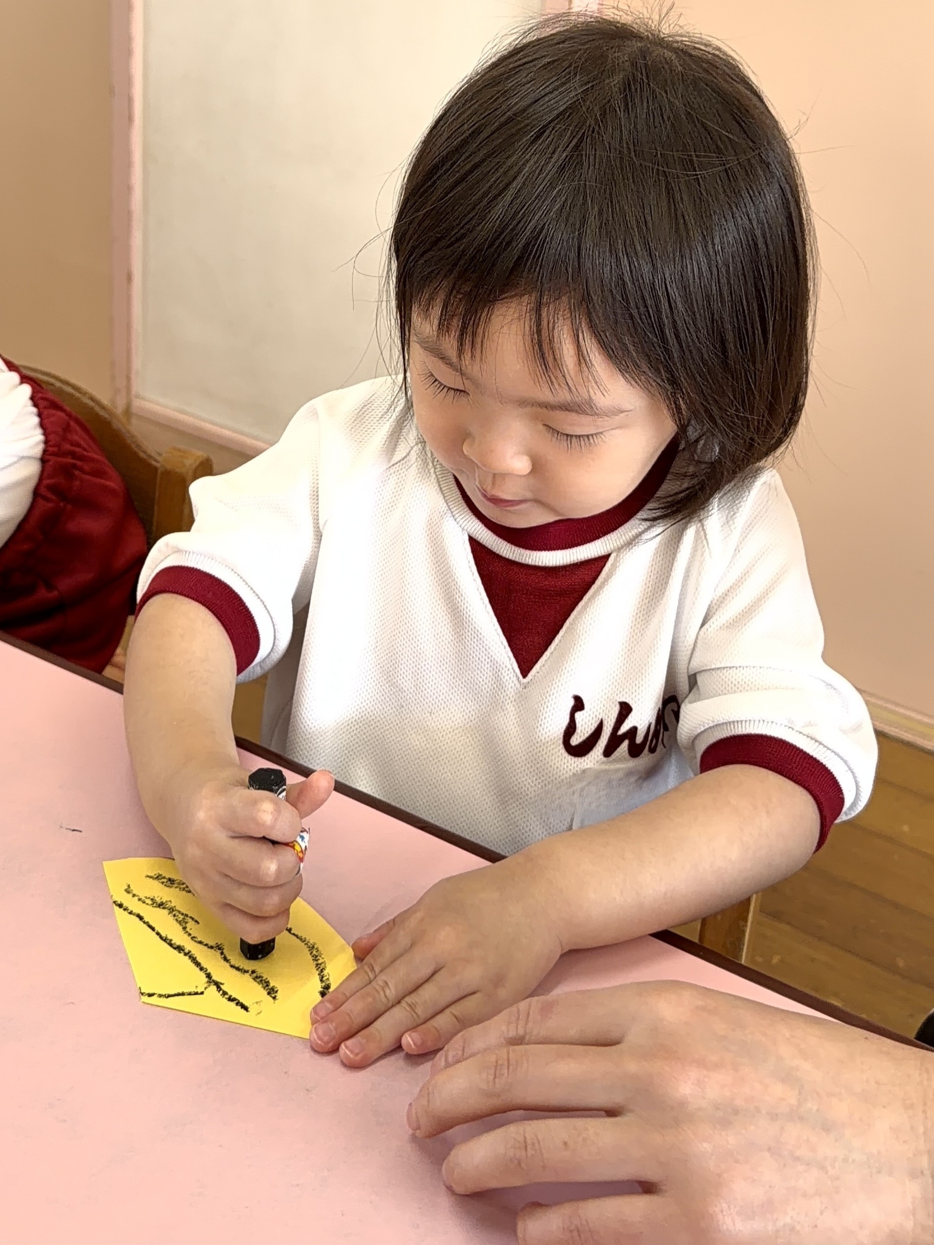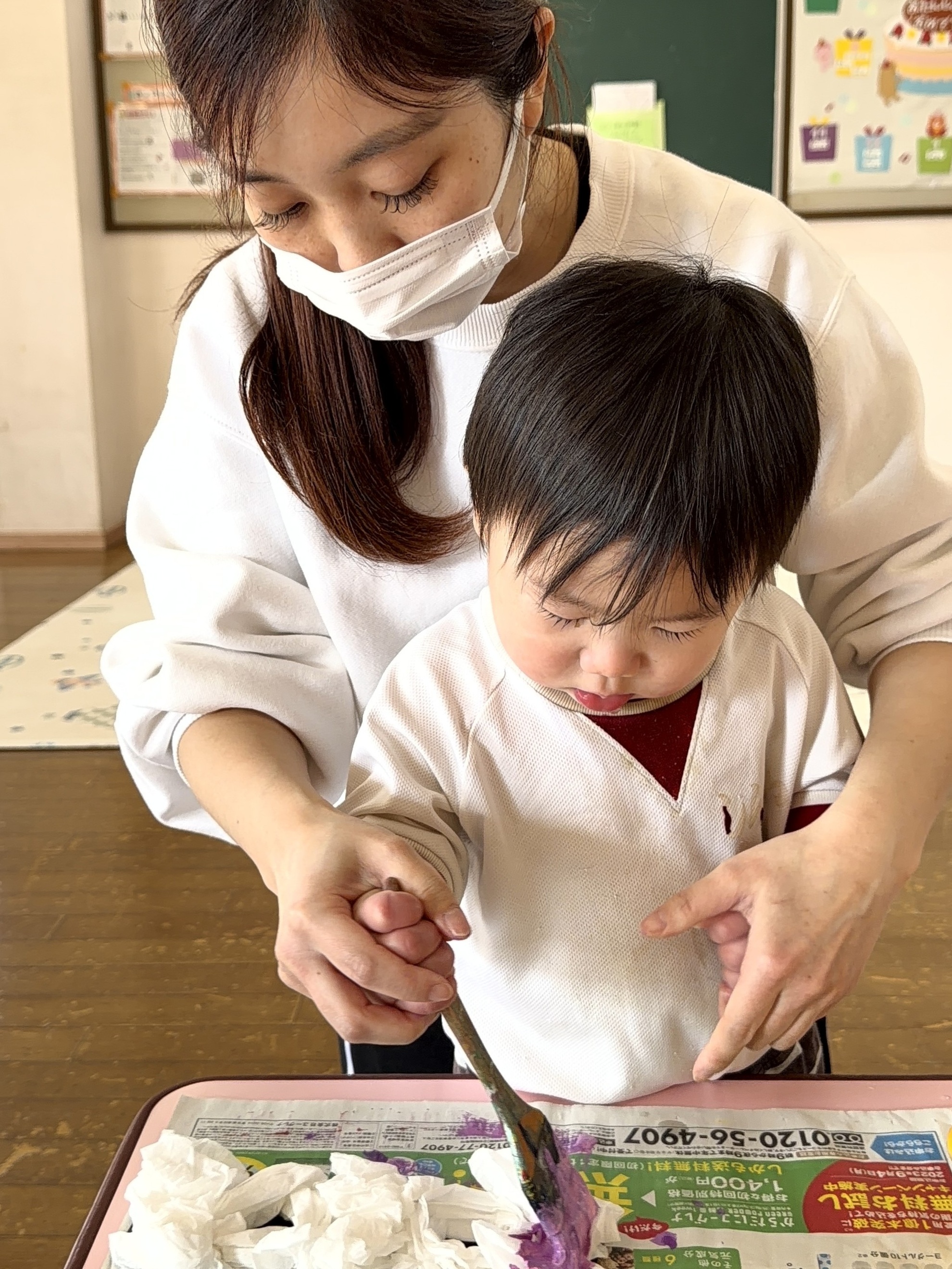 豆まきの準備👹 2月に入るとすぐに「節分」です。 節分の豆まきに備えてちゅうりっぷぐみさんは、 鬼のお面を作り始めました。 しっかり筆を持って、髪の毛を塗ります。 立派な角も忘れずに☆ お面の準備はオッケーだね! 心の準備はできてるかな♪ (製作の順番を待つおともだちのかわいい様子をパシャ📷) カテゴリー: 投稿日:2026年01月22日 前へ次へ