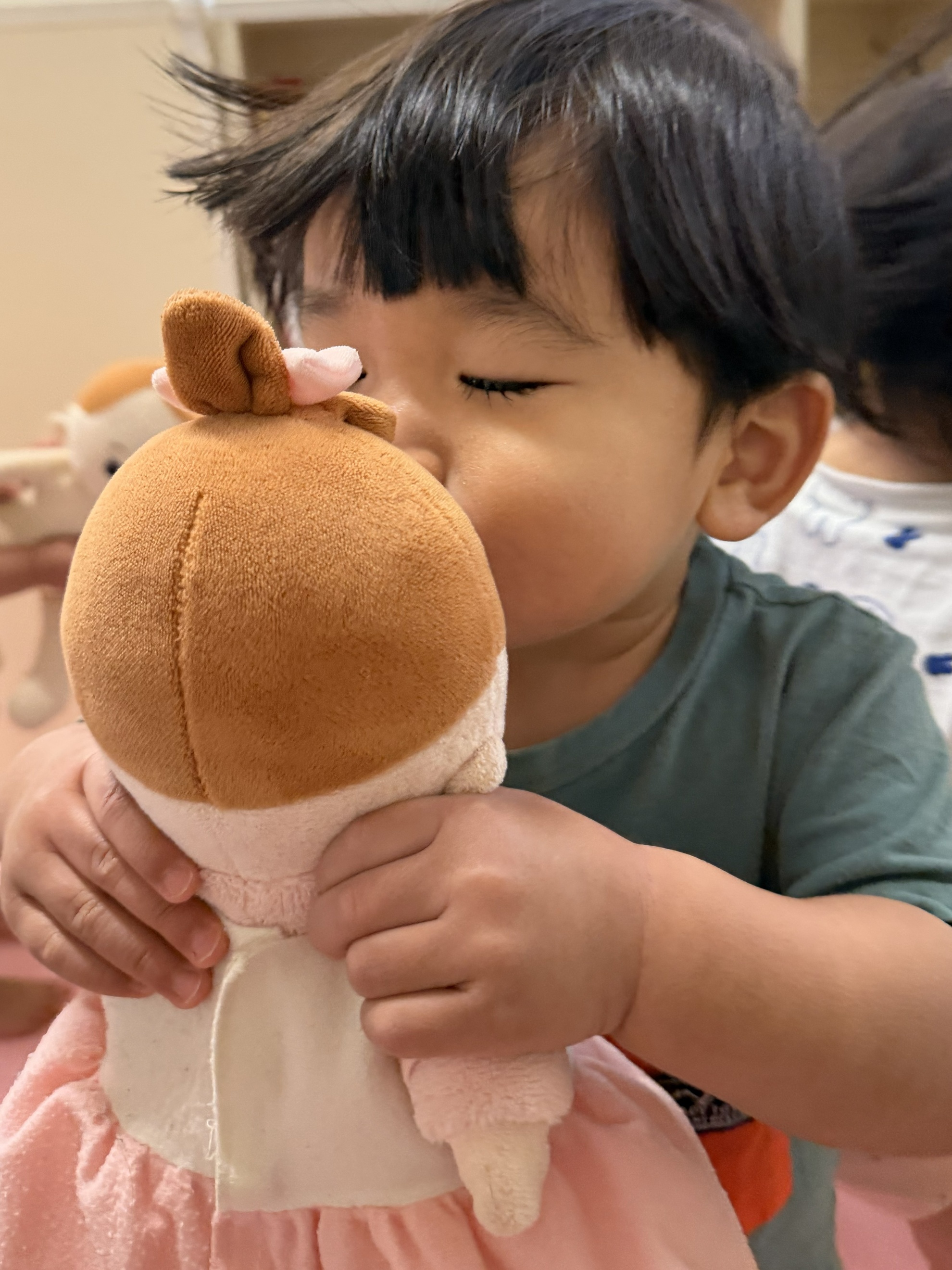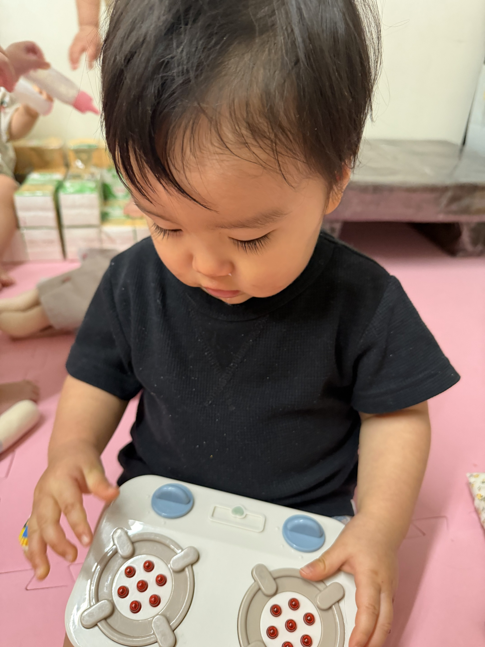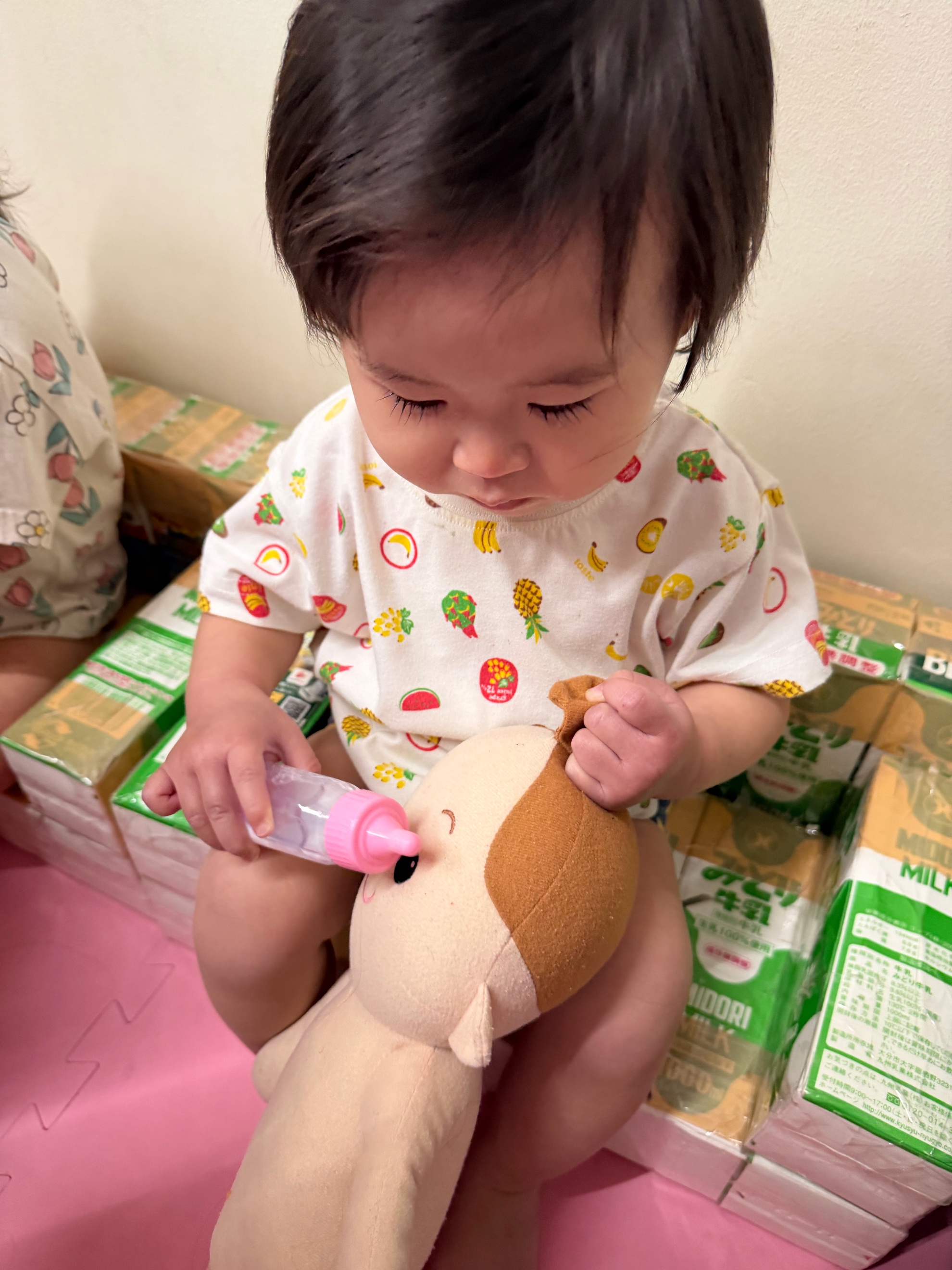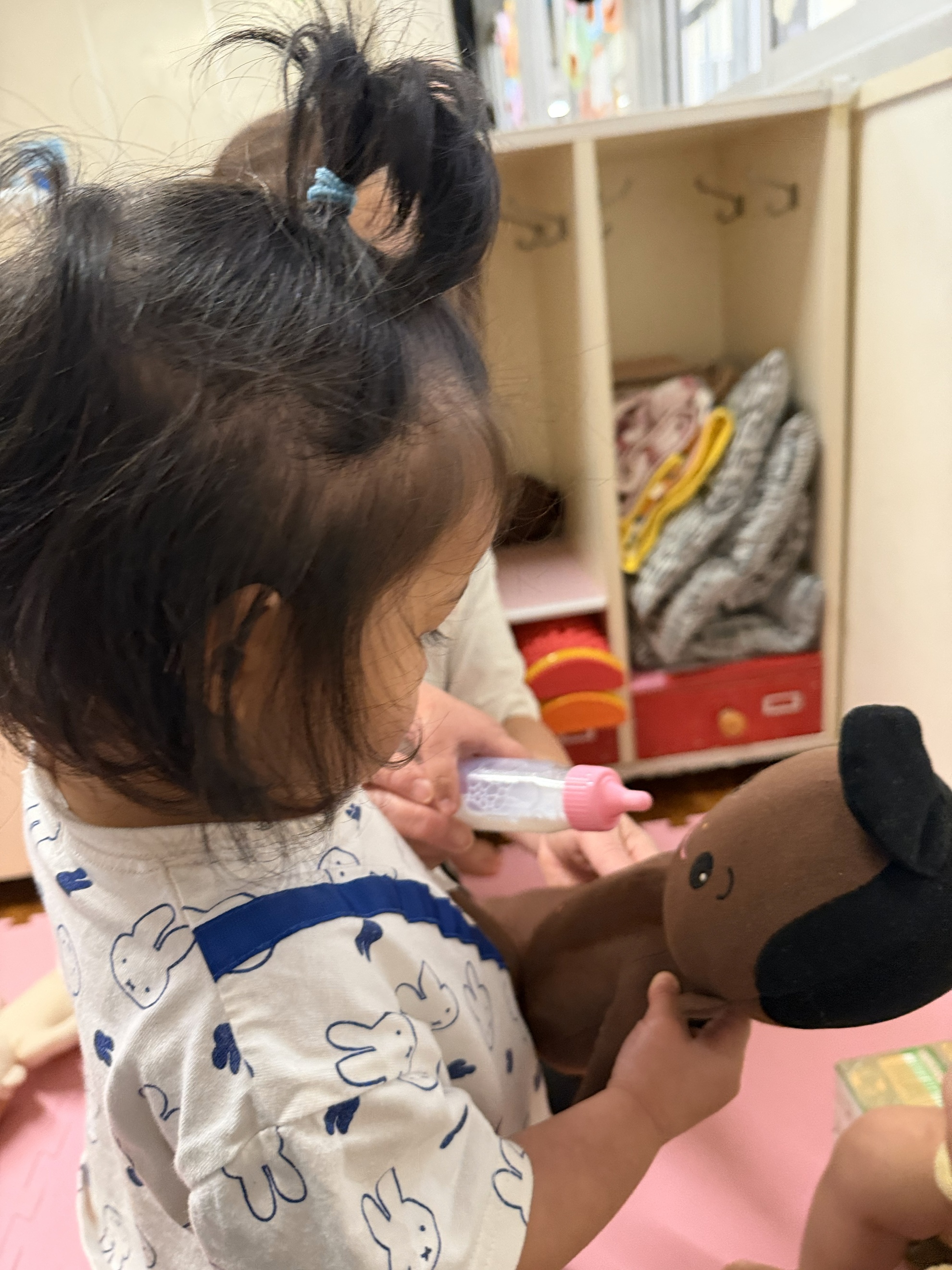 おままごとごっこ🌟 きくぐみさんのお部屋にやってきて、 興味深げにおもちゃを探し始めたうめぐみさん。 おままごとコーナーで目を輝かせて、ごっこ遊びが始まりました! ミルクをどうぞ💛 「赤ちゃんってかわいいなぁ~。よしよし。」 みんなもとってもかわいいよ! 「ぼくはふたりのおとうさんだよ。」 嬉しそうにお世話をしていますよ♪ 愛があふれちゃいました! そろそろお腹がすいてきたね。 何食べたい? DJのようにガス台を使う姿がかっこいいでしょ😎 カテゴリー: 投稿日:2026年01月30日 次へ