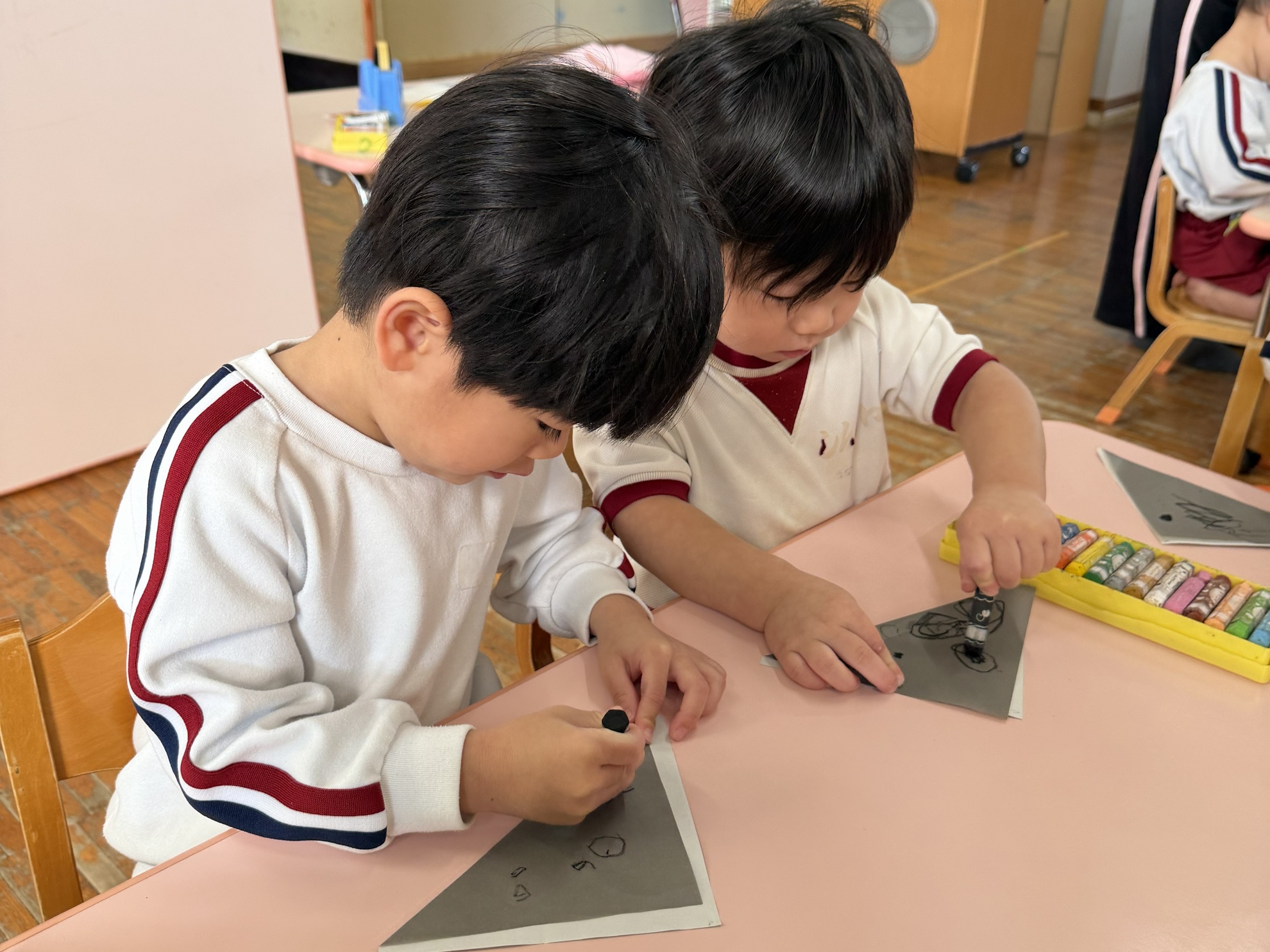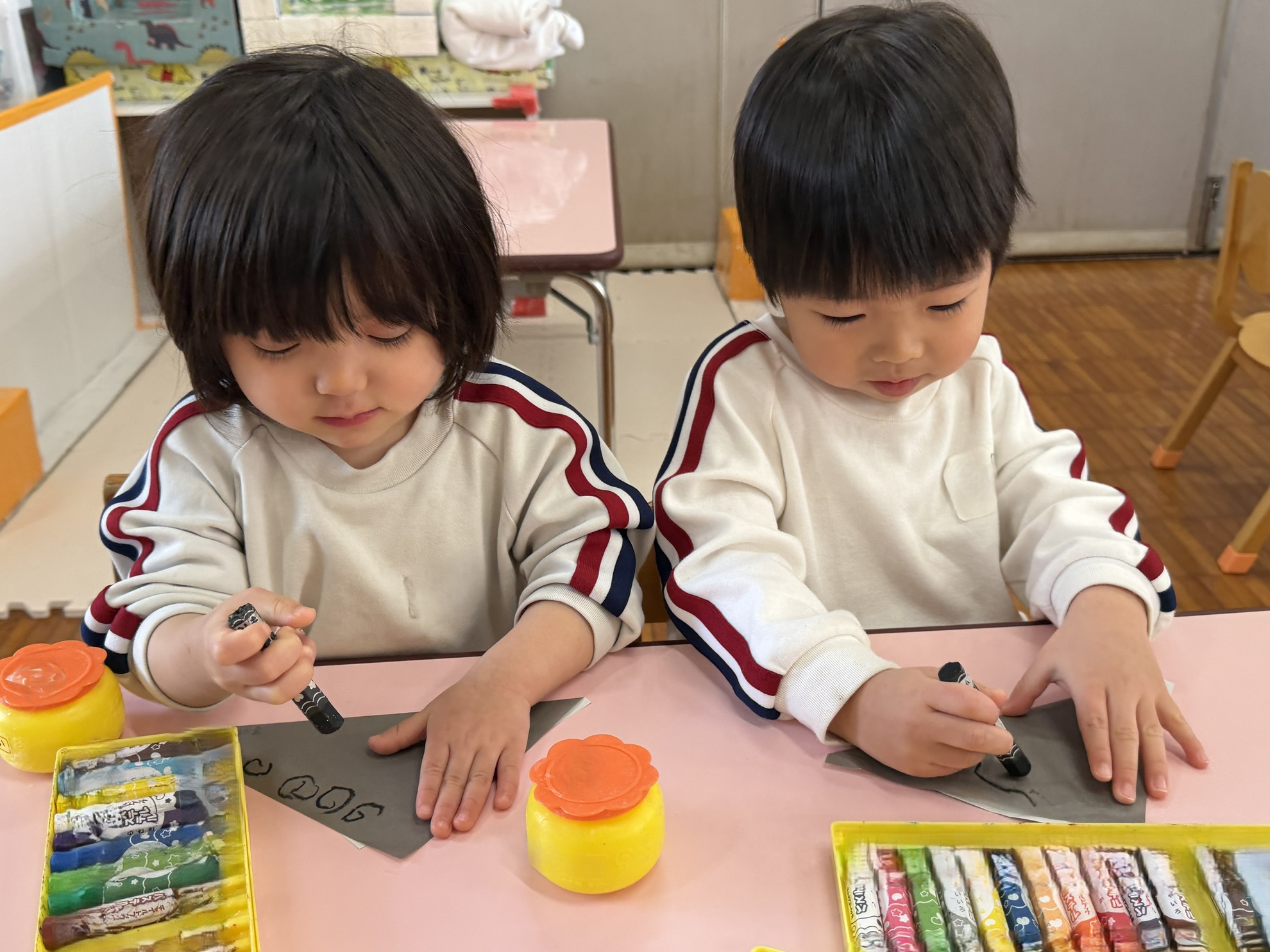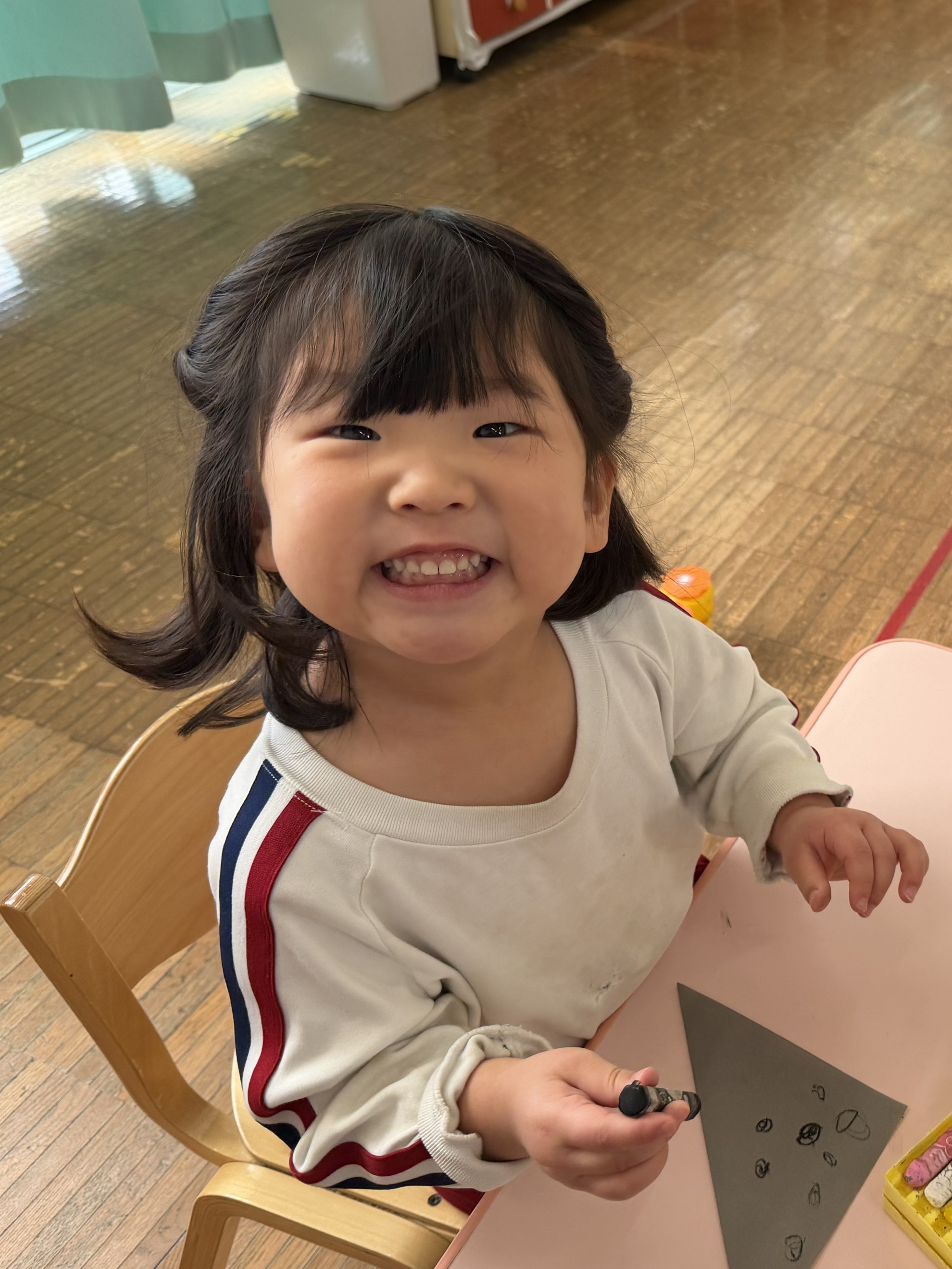 おでんはいかが? ももぐみさんのおでん屋さんの開店~! まずはこんにゃくを作りました。 三角形に折って、こんにゃくの気泡を描きます。 上手に描けてるでしょ★ ほら、こんにゃくだよ! おでんの製作の様子をInstagramのリール動画に載せています。 子どもたちの日常をぜひ覗いてみてください! 大根も。 味が染みておいしそうでしょ😊 カテゴリー: 投稿日:2026年02月13日 次へ